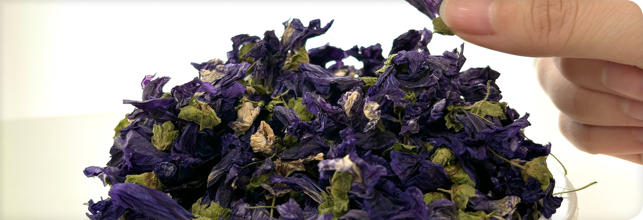 収穫されたたくさんの花は、状態のよいものだけを選別。その後、白神の澄んだ空気の中で自然乾燥させることで、色合いや香りに深みが増していきます。